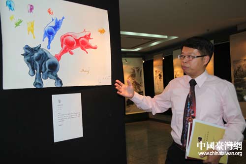 臺(tái)灣畫家蔣麟介紹自己的作品(中國臺(tái)灣網(wǎng) 李典典攝)
