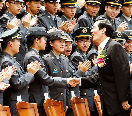 馬英九以他40年前上成功嶺暑訓的經驗,期勉全體軍校畢業(yè)生。(中國臺灣網(wǎng) 劉海偉)