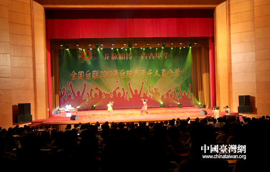 6日,全國臺聯(lián)2010年臺胞青年千人夏令營在北京舉行開營儀式。圖為大陸高校青年獻上了精彩文藝演出。(中國臺灣網(wǎng) 張弛 攝)
