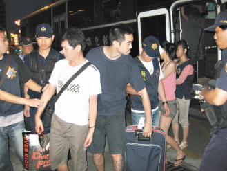 彰化警方從越南押解詐騙集團(tuán)成員返臺,連人帶行李帶往彰化縣警察局。圖片來源:臺灣《聯(lián)合報》