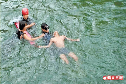 顏姓少年被救難人員救起時,已無生命跡象。圖片來源:臺灣《蘋果日報》