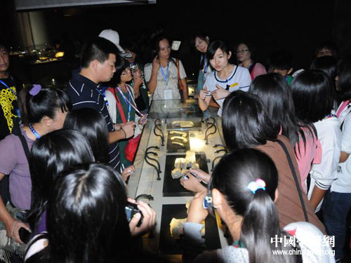 臺灣學生在金沙遺址博物館內仔細聆聽解說員介紹。圖片來源:四川省臺辦