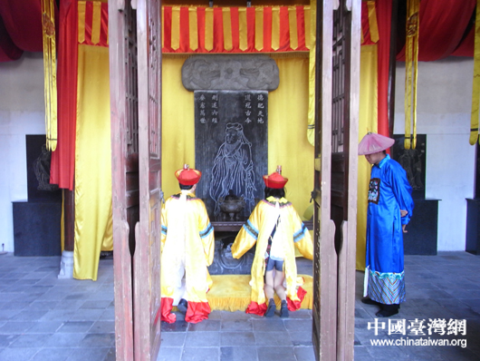 跪拜至圣師孔子是必不可少的程序 (中國臺灣網 蕪同 攝)