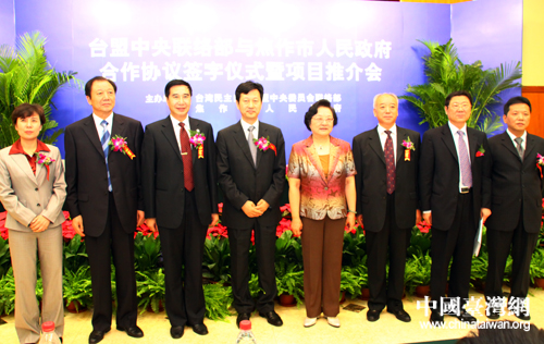 臺盟中央主席林文漪(右四)、臺盟中央副主席黃志賢(左三)、河南省副省長宋璇濤(左四)等出席臺盟中央聯絡部與焦作市簽署合作協議儀式。(中國臺灣網 孫金誠 攝)