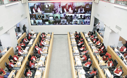 “凡亞比”臺(tái)風(fēng)來(lái)勢(shì)洶洶,馬英九到臺(tái)灣災(zāi)害應(yīng)變中心聽取簡(jiǎn)報(bào),并與臺(tái)灣各縣市首長(zhǎng)進(jìn)行視訊會(huì)議。 來(lái)源:臺(tái)灣《聯(lián)合報(bào)》