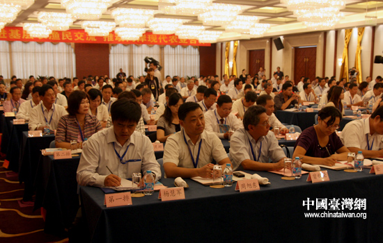 來自海峽兩岸的農漁業生產者、專家學者、各農業組織和業務主管部門負責人400余名代表濟濟一堂,圍繞兩岸農漁業交流展開深入座談。農業部副部長高鴻賓、臺盟中央副主席黃志賢、江蘇省副省長黃莉新、國臺辦交流局局長李維一、海峽兩岸農業交流協會會長于永維和臺灣省農會總干事張永成、臺灣二十一世紀基金會董事長高育仁等出席了開幕式。