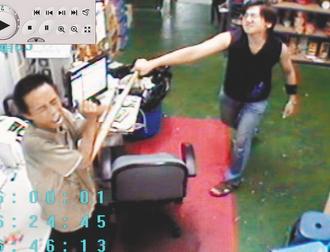 店內監視器拍下店長毆打乞丐致死全過程。(圖:臺灣《聯合報》)