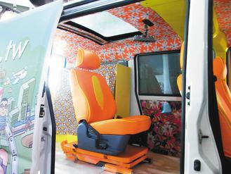 蘇嘉全的“itoro號”,特別強化喇叭音響功能;另外車頂開天窗,并加裝電動升降椅的機關。來源:臺灣《聯合報》