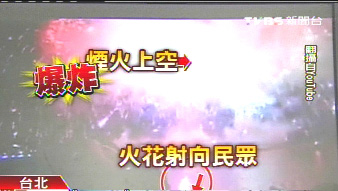 據報道,昨晚7時30分,水上芭蕾煙火秀開始,起初還是五光十色,但接著煙火聲勢漸漸變大,一管火藥突然在離岸邊200米的表演船只上爆炸,四濺的火花流彈瞬間沖向岸邊,直往民眾身上沖去。民眾頓時尖叫驚慌,煙火竟然炸向自己,鏡頭上顯示多數民眾順勢趴下,有的民眾則四處奔逃,畫面上充斥著民眾的大叫聲。
