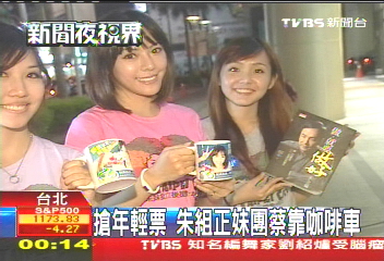 據(jù)報(bào)道,朱立倫于昨日晚間成立了“正妹助選團(tuán)”,共5名美女成員,其中有一位還曾與鐘漢良拍過戲。5名美女身穿印有朱立倫頭像的T恤,忙碌地派發(fā)文宣,推銷商品,幫忙募款,還要與前來合影的臺(tái)灣年輕民眾合影,“正妹團(tuán)”的一名成員“米果”表示實(shí)在是太過忙碌,不過感覺“很值得”,算是經(jīng)驗(yàn)和學(xué)習(xí)。