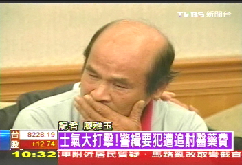 中國臺灣網10月15日消息 據臺灣TVBS電視臺報道,警察追緝通緝犯,通緝犯受傷,醫藥費卻由基層警察支付?這一啼笑皆非的鬧劇卻真的發生在臺灣南投縣一名黃姓警察身上。當他委托民代出面控訴這一時間時,泣不成聲。