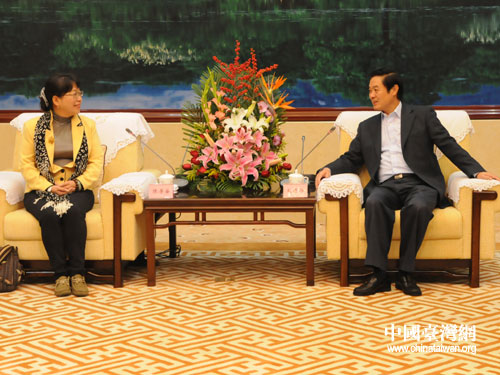 中共四川省委書記、省人大常委會主任劉奇葆會見來訪的臺灣長青村敬老院負責人陳芳姿。圖片來源:四川省臺辦