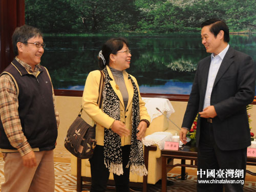 劉奇葆會見臺灣長青村敬老院陳芳姿夫婦(圖)
