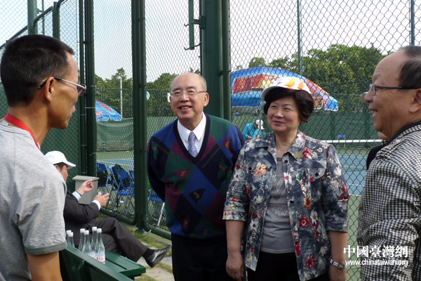 吳伯雄、蔣孝嚴與隊員張凱貞的父親張金萊交談(中國臺灣網 李徽 攝)