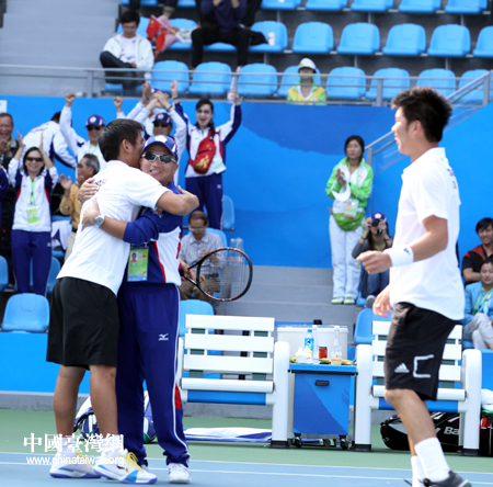 中國臺灣網(wǎng)11月16日廣州消息 網(wǎng)球男子團體決出冠軍,頭號種子中華臺北力敵3號種子烏茲別克斯坦,在決定勝負的第三場雙打中,以2:0完勝。這也是中華臺北隊在亞運會網(wǎng)球男子團體賽上第一次打進決賽并贏得金牌。
