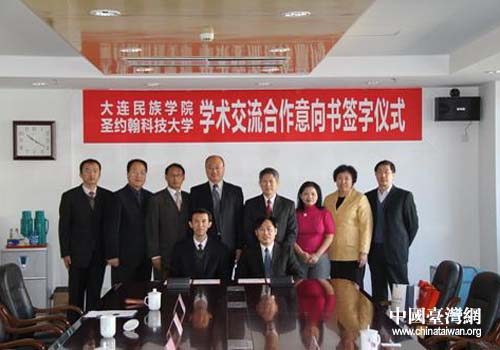 大連民族學(xué)院與臺灣圣約翰科技大學(xué)簽署學(xué)術(shù)交流合作意向書(圖片來源:大連市臺辦)