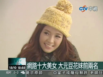 據(jù)報道,臺灣網(wǎng)絡(luò)知名部落格公布今年人氣最旺的正妹型男排行榜,《大學(xué)生了沒》節(jié)目固定班底的大元,以自然甜美的模樣,被封為新一代的網(wǎng)絡(luò)甜美女神,部落格人氣直沖700多萬,獲得正妹排行第一名。