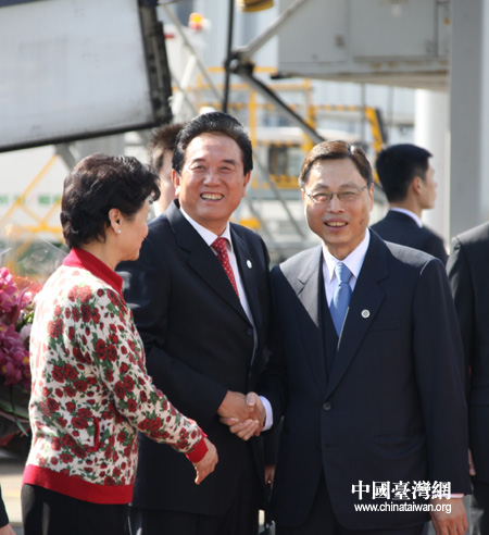 12月20日中午,臺灣海基會副董事長兼秘書長高孔廉在機場迎接海協(xié)會會長陳云林及海協(xié)會協(xié)商代表團。當天中午,由海協(xié)會會長陳云林率領的海協(xié)會協(xié)商代表團乘坐飛機順利抵達臺北桃園機場,參加將于21日上午舉行的兩會領導人第六次會談。