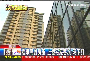 報道稱,在香港擁有2萬多個駐點的地產龍頭中原地產,通過臺北廣告商的轉介,鎖定高雄市區大坪數的豪宅投資。僅是這個建案,一口氣訂下40組。臺灣中介業者表示,這個地段的房價因此也從每平15-20萬,一下子跳到30萬—35萬。中介業者稱,中原地產除了買樓,還買舊飯店改裝,專門負責接待大陸游客團。