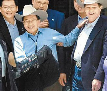 2001年6月,陳水扁過境休斯頓時十分風光,戴牛仔帽、穿牛仔靴、吃德州牛排,站在桌子上讓媒體拍照。9年后,陳水扁淪為階下囚,當年接待他的“德州之味”牛排館最近悄悄撤下了掛在餐館門口的陳水扁照片。
