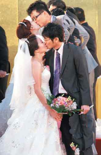 中國臺灣網1月2日消息 綜合臺灣媒體報道,2011年元旦全臺涌現“結婚潮”,不僅結婚人數創歷史最高紀錄,婚禮形式也極具創意,引發島內民眾和媒體的強烈關注。