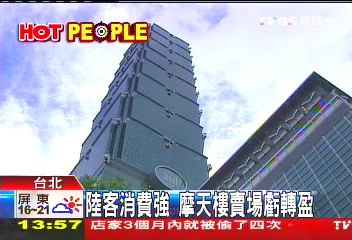 中國臺灣網(wǎng)1月2日消息 據(jù)臺灣TVBS電視臺報道,臺北101董事長林鴻明在接受訪問時表示,大陸游客的消費能力很高,占臺北101大樓賣場總消費額的12%,促使今年臺北101大樓賣場的業(yè)績一路飄紅,6年來首度轉(zhuǎn)虧為盈。他表示若以后開通大陸游客自由行,臺北101大樓賣場的業(yè)績會翻倍上升。