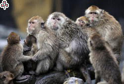 全臺持續低溫。臺北木柵動物園里的馬來猴,也全都聚集在一起相互取暖,抵御寒流。圖片來源:臺灣《中國時報》