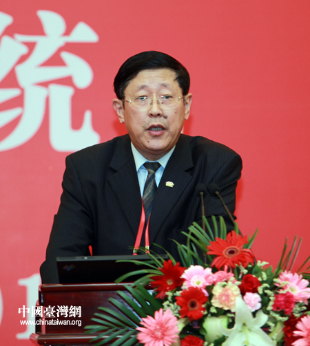 南京大學臺研所所長崔之清代表自己所在小組向大會作報告。(中國臺灣網 鐘寶華 攝)