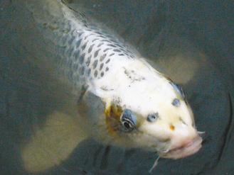林安彬表示,有一種“孔雀類”錦鯉,它身上有金色皮膚,也有黑色素細(xì)胞,它的頭平又大,花紋剛好長在鼻孔,看起來很像眼睛,鼻孔下凸起來,又像鼻梁,他們稱為“鬼面”,這種品種的錦鯉10尾有8尾有“鬼面”特征。