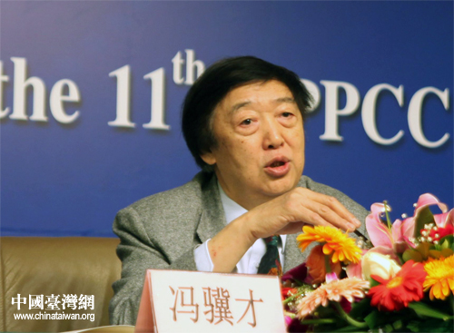 3月10日上午,“全國(guó)政協(xié)委員談文化建設(shè)”記者會(huì)在北京梅地亞兩會(huì)新聞中心舉行。圖為:馮驥才委員回答記者提問。(中國(guó)臺(tái)灣網(wǎng) 陳佳慧 攝)