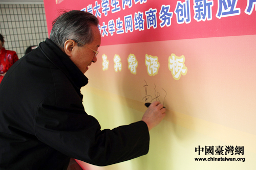 中國互聯網協會副理事長高新民簽名。 (中國臺灣網 王偉 攝)