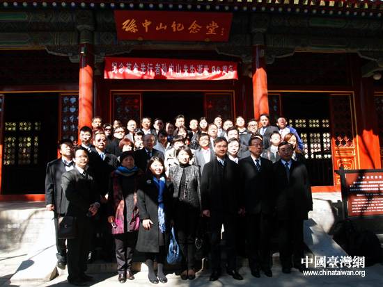 中國國民黨青工總會參訪團拜謁北京孫中山衣冠冢。圖為參訪團在孫中山紀念堂前合影。(中國臺灣網(wǎng) 張弛 攝)