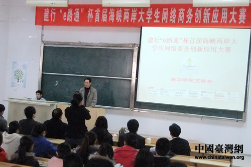 3月26日下午,首屆海峽兩岸大學生網絡商務創新應用大賽暨第四屆大陸大學生網絡商務創新應用大賽在濰坊學院舉行入校宣講會。(圖片來源:濰坊學院)