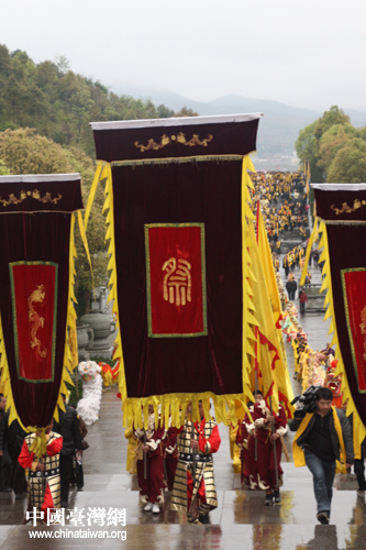 辛卯年清明海峽兩岸祭祀炎帝神農氏大典4月3日在湖南炎陵縣炎帝陵舉行。190余名參加第二屆在臺湘籍后裔湖南行的在臺湘籍人士參加了祭祀典禮。(中國臺灣網 楊麗 攝)