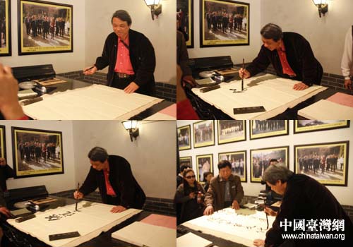 中國臺灣網4月10日南陽消息 4月9日,“2011年兩岸記者聯合采訪河南”采訪團一行來到中國歷史文化名城——河南南陽采訪參觀。置身楚漢文化發祥地,兩岸記者感慨萬千,臺灣記者即興揮墨題詞,倡導保護文化資產、復興中華文化。