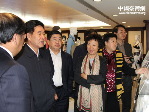 寧夏紡織產(chǎn)業(yè)考察團(tuán)在臺(tái)灣紡織業(yè)拓展會(huì)考察高科技功能面料及產(chǎn)品(左二為寧夏自治區(qū)政協(xié)副主席解孟林,左四為寧夏自治區(qū)黨委副秘書(shū)長(zhǎng)、臺(tái)辦主任張秀燕)。圖片來(lái)源:寧夏臺(tái)辦