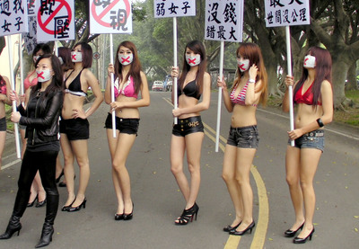 8名辣妹上街舉牌抗議。圖片來源:臺灣“今日新聞網”