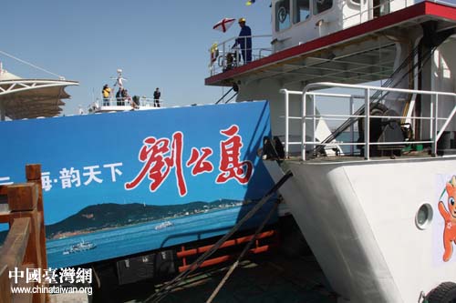 旅游船上遠眺劉公島。(中國臺灣網 劉海偉 攝)
