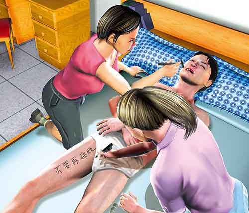 判決指出,去年9月22日中秋節上午,王婷牙先到陳男板橋區租屋處,趁他喝酒吞服感冒藥昏睡,用領帶捆綁他雙手雙腳固定在床上,再用刮胡刀剃掉他的陰毛、眉毛。周芷晴稍后趕到,兩人改用電話線、電玩搖桿連接線捆綁陳男,拿簽字筆在他下腹部畫一只拳頭大的烏龜,注明“王八”,又在他左右大腿寫上“不要再搞妹、請勿靠近”、“我有性病”、“賤”等字,還持菜刀劃傷陳男左大腿。