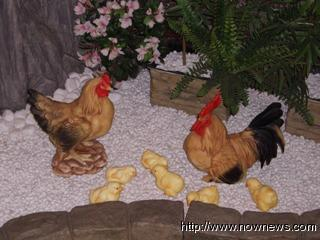 蔡英文昨日拜會(huì)呂秀蓮,呂從昔日的嚴(yán)厲批評(píng)轉(zhuǎn)為極盡吹捧。呂指著她辦公室大門處的一對(duì)帶著小雞的公雞和母雞稱,母雞看起來比公雞還要“雄糾糾、氣昂昂”,這“寓涵天機(jī)”。圖片來源:臺(tái)灣“今日新聞網(wǎng)”