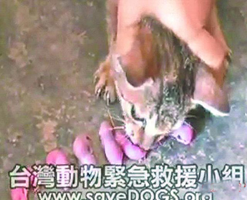 硬塞,小孩最后掰開(kāi)小貓的嘴,試圖塞入幼鼠。圖片來(lái)源:臺(tái)灣媒體