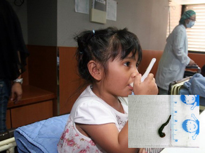 5歲田姓女童右鼻孔取出約3厘米長活水蛭。圖片來自網絡