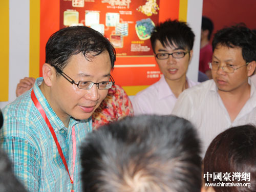在推銷特色產(chǎn)品的同時,展商們也將目光瞄準了即將開放的大陸居民赴臺個人游市場,通過廟會現(xiàn)場推介臺灣。開幕式現(xiàn)場,臺中市副市長蔡炳坤特意穿上具有臺灣特色的“臺灣藍”,推介臺灣。蔡炳坤說,以臺灣廟會的方式來呈現(xiàn)最足以代表臺灣特色和地方文化。更表示,大陸居民赴臺個人游馬上要啟動,全臺灣都做好準備,歡迎大家到臺灣來,更歡迎大家到臺灣的最中心位置臺中市。而“中外餅鋪”的總經(jīng)理張女士在宣傳自家餅鋪同時,更是熱情地向每一位過往游客展示高雄旖旎的風(fēng)光圖片,邀請大家去高雄旅游。(記者 宿靜)