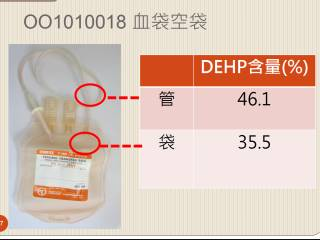 凌永健表示,以臺(tái)灣捐血中心血袋保存的數(shù)據(jù)顯示,只要血一入袋中,DEHP數(shù)值就會(huì)隨著時(shí)間增加,與一般正常人血液相比,最高甚至可達(dá)1000倍,數(shù)字非常可怕。除了DEHP之外,這份調(diào)查報(bào)告物中受測(cè)物品中的“點(diǎn)滴輸液套管”,也被驗(yàn)出有29.1%比重的DINP,其它包括“綜合營(yíng)養(yǎng)輸注套”、“廢液收集器”、“腎臟造口引流袋”等也被驗(yàn)出20%到30%不等的高比重DEHP。