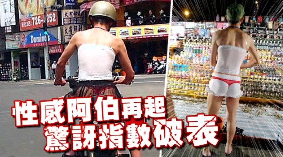 中國臺灣網7月4日消息 據臺灣媒體報道,日前因穿紅色丁字褲、外罩黑色薄紗裙騎車暴紅的男子,“性感阿伯”再度現身,被目擊換裝,在夜市玩套圈圈,上半身白色薄紗小可愛不變,下半身改穿有荷葉邊白色小熱褲再套上丁字褲,性感指數又破表了,島內網友驚艷:“標準模特兒身材!”但也有網友諷:“阿伯界掀起偽娘超人裝扮流行嗎?”