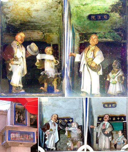 何金龍大師于日據時代創作的“孫中山塑像”,隱身于金唐殿三川入口外的“墀頭”部位,上圖為整修前,下圖則為所在位置與整修后樣貌。圖片來自于網絡