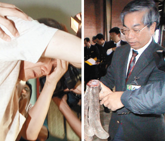 臺灣海關爆集體貪瀆案,檢調約談臺當局“關稅總局副局長”呂財益(右圖)、民代助理張勝泰(中)等29人,深夜陸續移送臺北地檢署復訊。圖片來源:臺灣《聯合報》