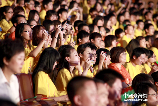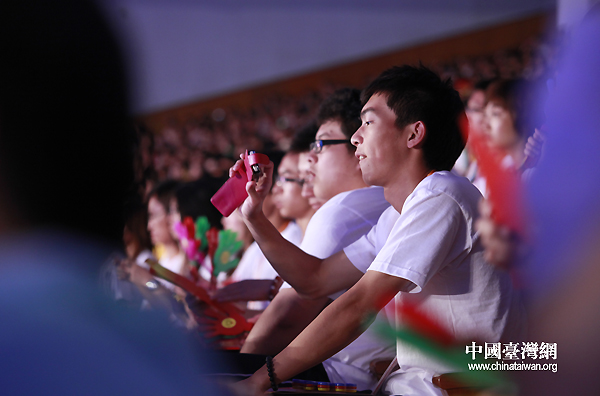 面對如此精彩的演出和眾多云集的明星大腕,青年們忍不住拿出自己的相機拍照留念。(中國臺灣網 普燕 攝)
