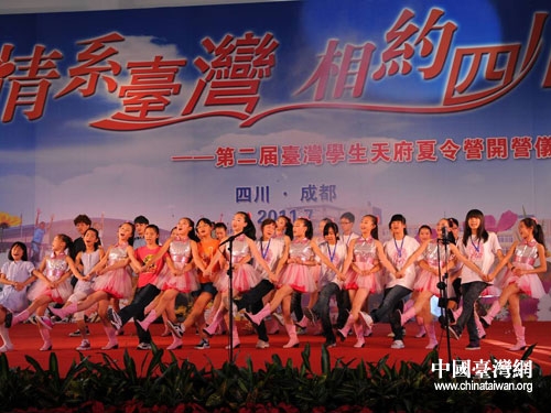 川臺兩地學生在開營儀式上共同表演了精彩的文藝節目。圖片來源:四川省臺辦