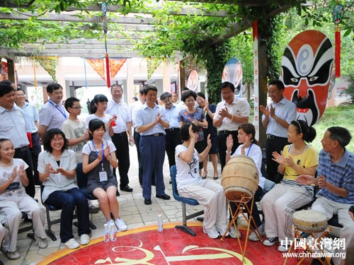 四川與臺灣小朋友擊掌歡慶合作表演川劇鑼鼓成功。圖片來源: 四川省臺辦